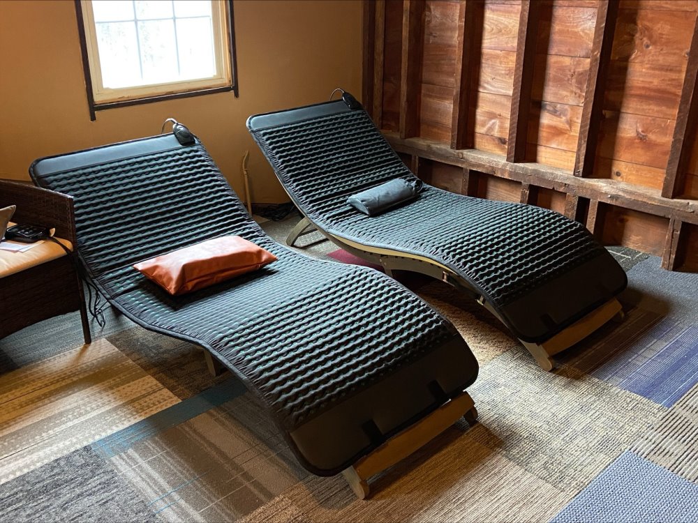 The second floor space offers wellness equipment for your use. We have a yoga/meeting room, a sauna room with showers, and an large room with equipment for your wellbeing. You can book every week or make the trip for a special respite, you will be amazed by our offerings.