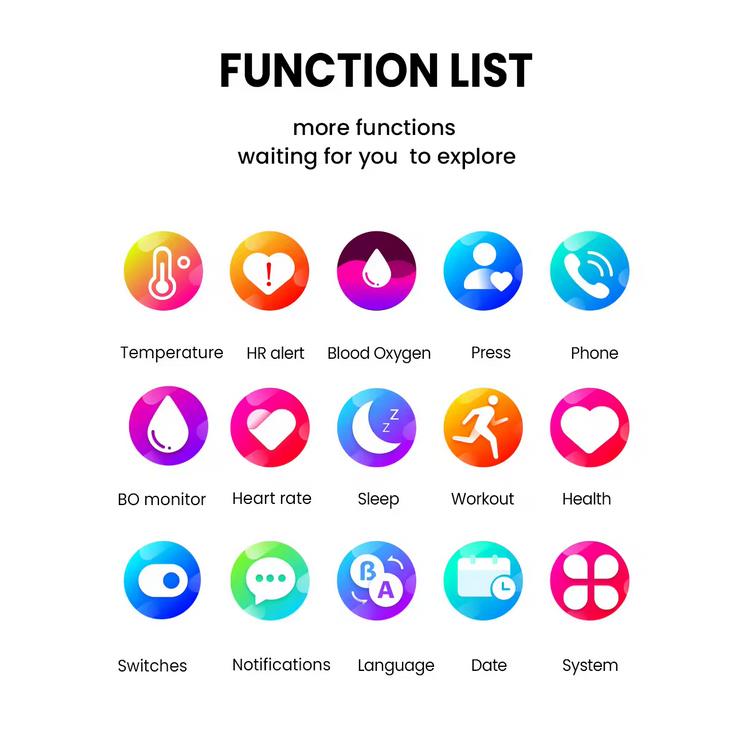 Answer Call, Push Message, Mood Tracker, Message Reminder, Dial Call, Altitude Meter, Heart Rate Tracker,